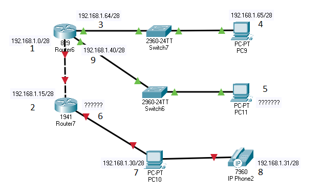 Below is the network created using 28 subnet mask, guess the missing IP addresses, and correct the wrongly assigned IP addresses in the network.