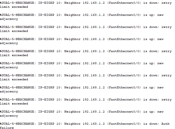 EIGRP authentication failure