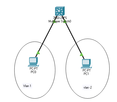 Below is an example of a network showing routing between VLAN 1 and VLAN 2