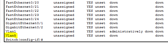 For e.g. – We need to allow routing between two VLANs that are Vlan1 and Vlan5. To make that work we have to create Virtual Interface 5 which is not available on the switch by default.