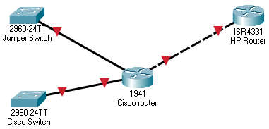 In the image above, two interfaces on the Cisco router are connected to the non-Cisco devices so we can disable the CDP on those interfaces while running the CDP on the interface connecting to the Cisco switch.