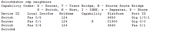 We can see in the output of the show CDP neighbor command that switch0 has the information available for 3 devices only while there is no information about router1 and switch1