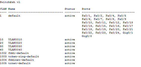 We can see in the image below that 4 created VLANs are showing up in every switch which means that VLAN information was successfully replicated to all the switches except the transparent mode switch.