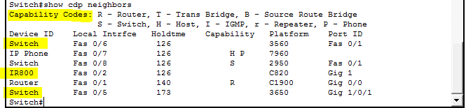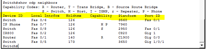 Show CDP neighbor command output lots of important information about the directly connected Cisco devices.