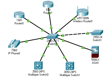 In the example network below, we have used different types of network devices, we will now check the output of 'show CDP neighbor' command to see what the output looks like and how the information is shown by the CDP protocol.